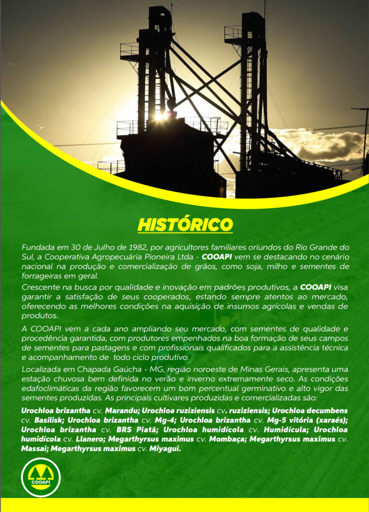 A COOAPI conta hoje com 50 colaboradores diretos, possui estrutura de armazenagem com capacidade para 13.800 toneladas. Entre outros negócios da cooperativa, destaca-se a produção de sementes forrageiras de capim e beneficamente de arroz.